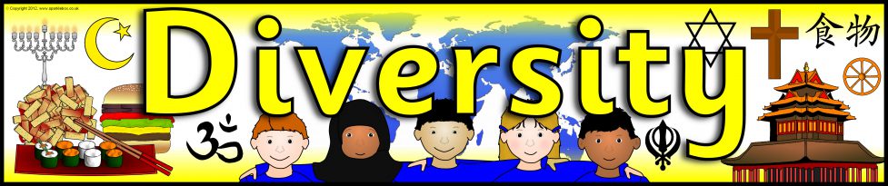 A colour banner with the title, ‘Diversity’, celebrating different people, cultures and religions of the world.