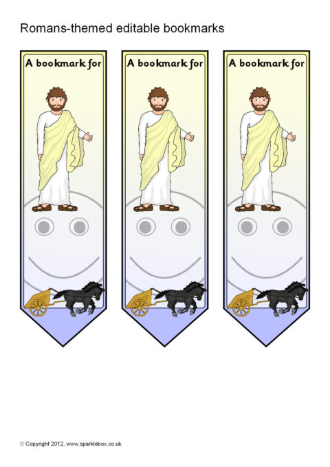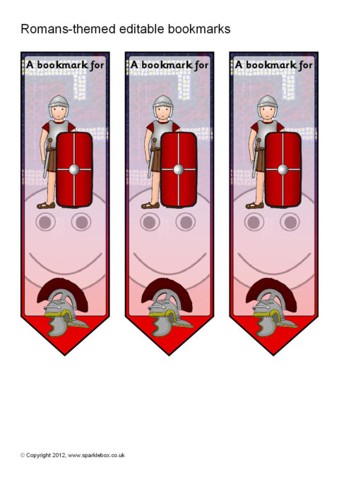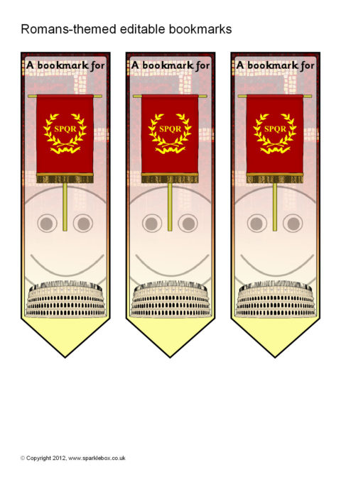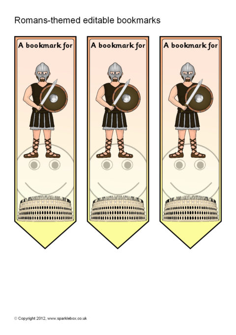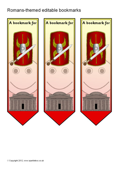A set of editable bookmarks themed with images associated with the Roman Empire. Each bookmark includes space for child’s name and an additional comment if needed.