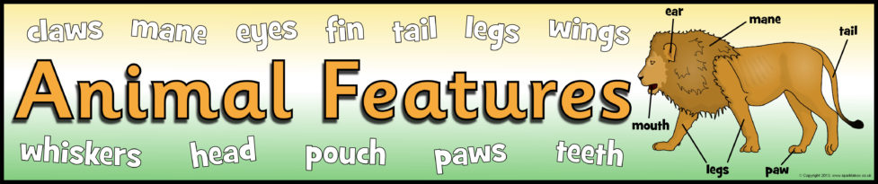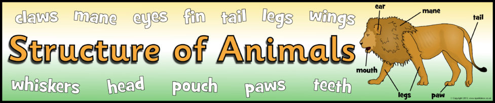 Printable banners with the titles, ‘Animal Features’ and ‘The Structure of Animals’ with words naming common animal parts.