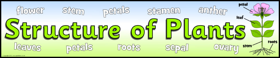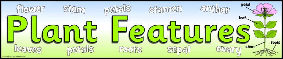 Colour banners with the titles, ‘Plant Features’ and ‘Structure of Plants’ featuring names of different parts of a plant.