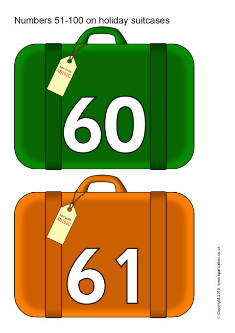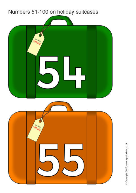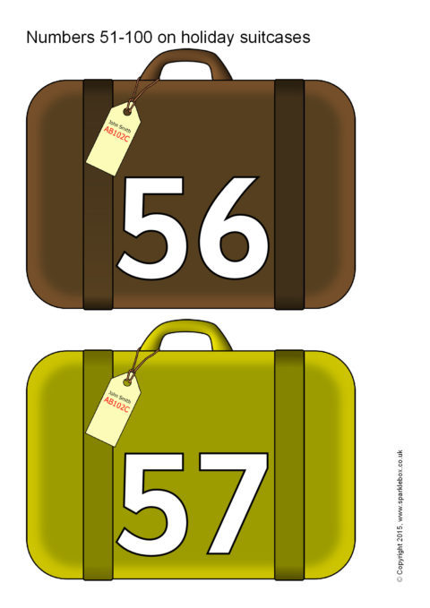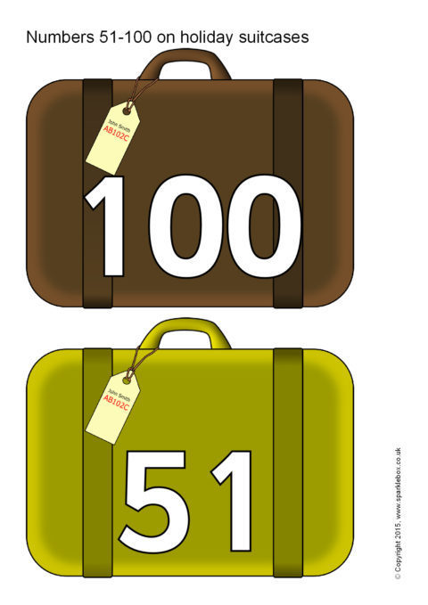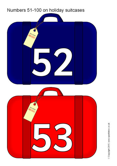 Numbers 51-100 on Holiday Suitcases (SB9142) - SparkleBox