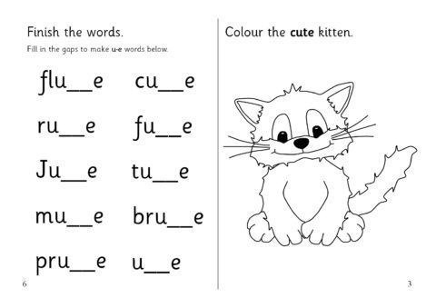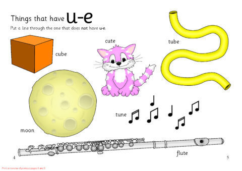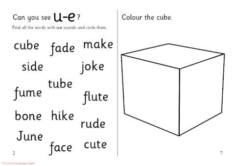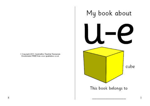 A set of sheets which can be assembled into an A5 folded booklet to give to pupils. It includes activities to aid recognition of the ‘u-e’ sound. Ideal as a homework resource.