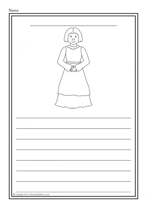 A set of simple printable sheets featuring items and characters from the story of The Enormous Turnip along with writing lines below.