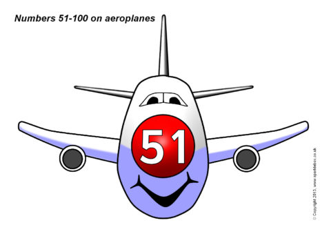 Numbers 51-100 on Aeroplanes (SB9407) - SparkleBox