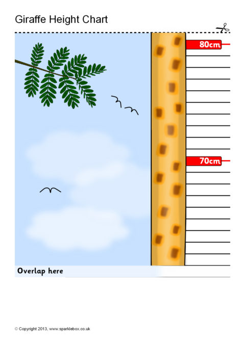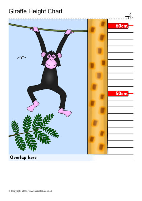 A colourful printable height chart that can be assembled and fixed to a wall. The chart goes up to 160cm but can be assembled to be as tall or short as you require.