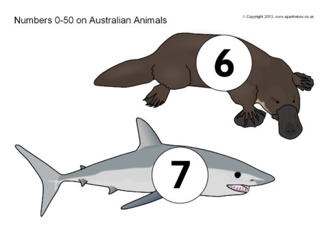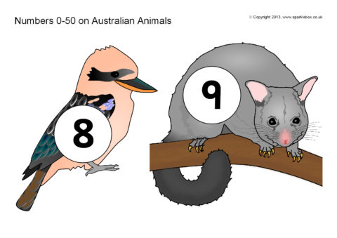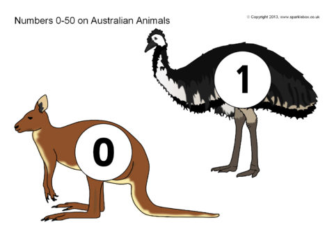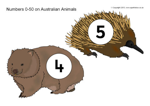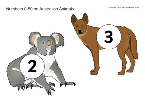 Numbers 0-50 on Australian Animals (SB9461) - SparkleBox