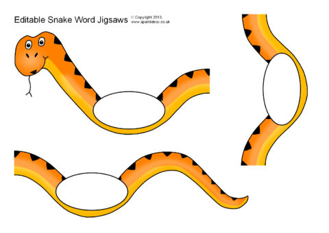 A set of editable templates featuring snakes in 3 sections that can be used to form simple jigsaws. Add your own text such to suit your needs.