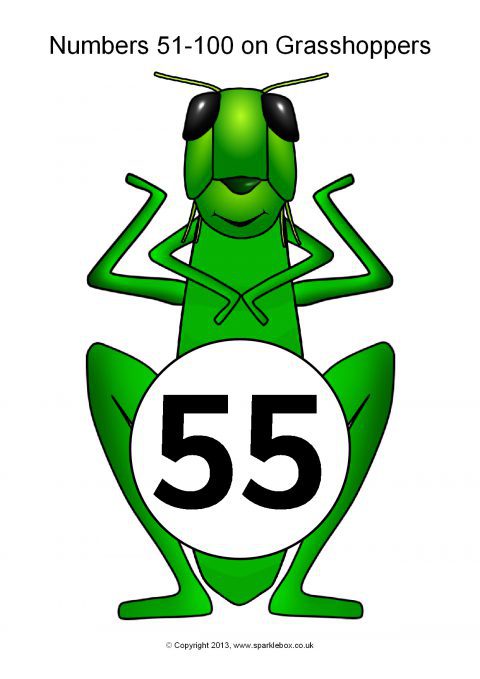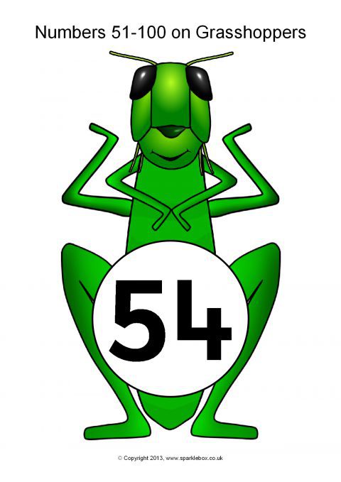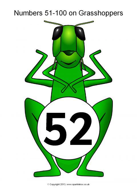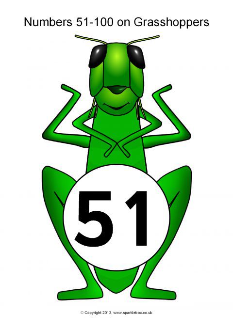 Numbers 51-100 on Grasshoppers (SB9547) - SparkleBox