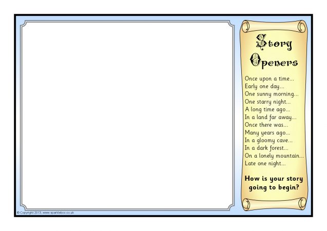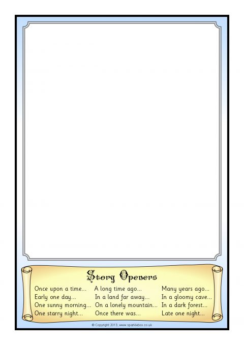 Portrait and landscape A4 page borders with some simple story openings to prompt children when writing their own stories. Includes Microsoft Word templates as well as resizable JPG images.