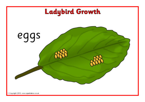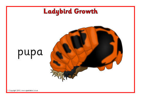 Simple A4-sized printable posters showing different stages in ladybird growth.