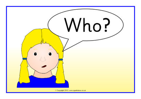 Printable posters featuring the basic question words, Who, What, Where, When, Why, How and Which.