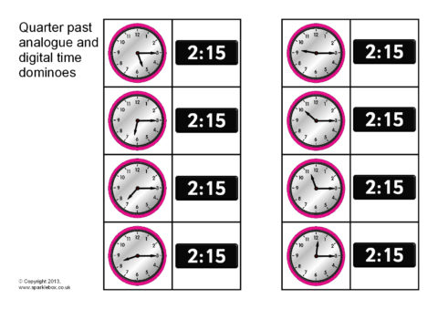 Analogue and Digital Quarter Past Time Dominoes (SB9652) - SparkleBox
