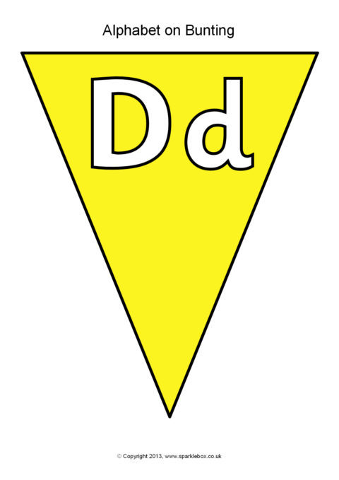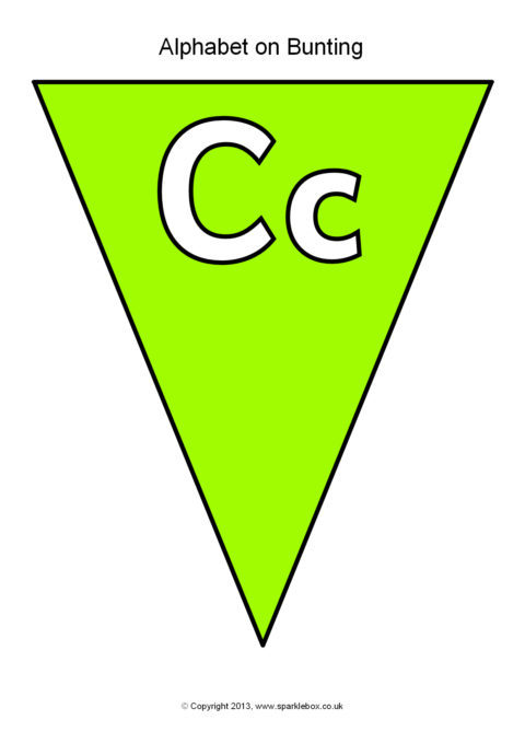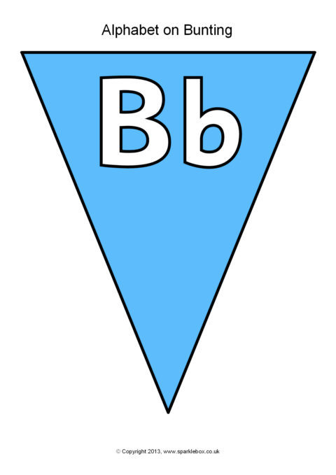 The uppercase and lowercase alphabet letters presented on printable coloured bunting.