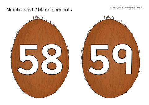 Numbers 51-100 on Coconuts (SB9675) - SparkleBox