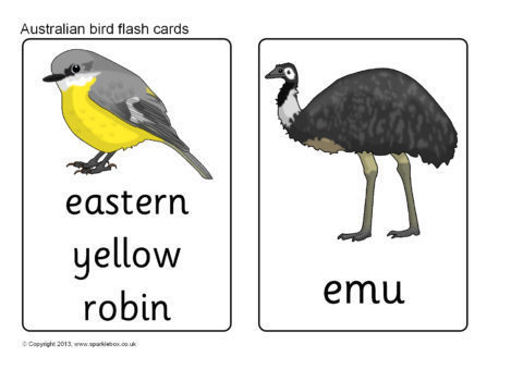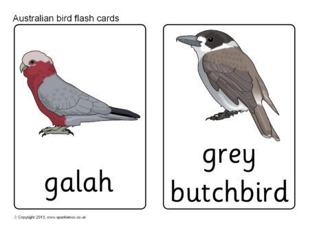A set of printable flash cards featuring various common Australian birds.