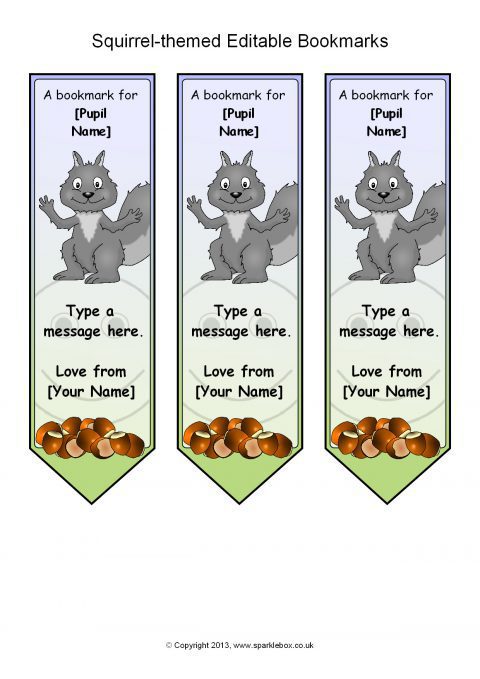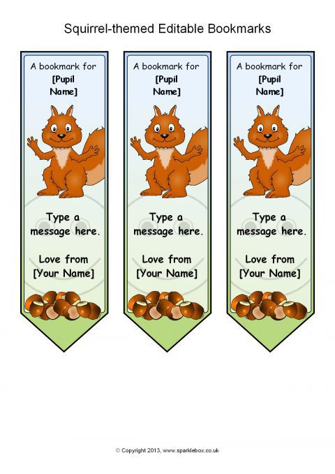 Squirrel-Themed Editable Bookmarks (SB9708) - SparkleBox