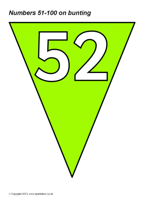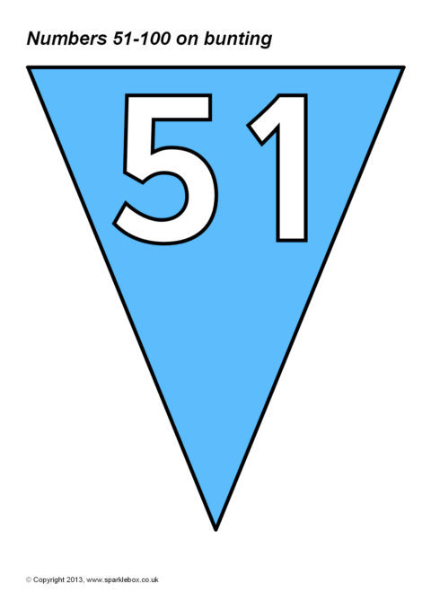 The numbers from 51 to 100 presented on printable multi-coloured bunting.