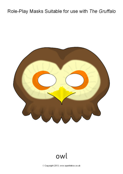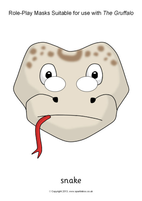 Simple printable masks that are suitable for use with the story of The Gruffalo.
