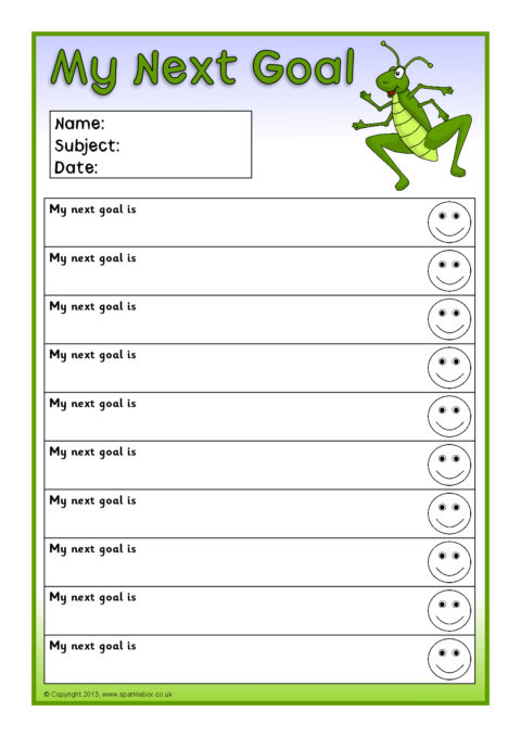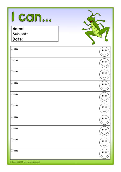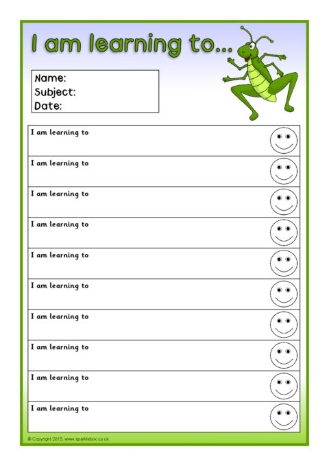 Editable target sheets (for Microsoft Word) with the text ‘I am learning to...’, ‘My next goal is...’ and ‘I can...’. Each sheet has space for 10 targets.