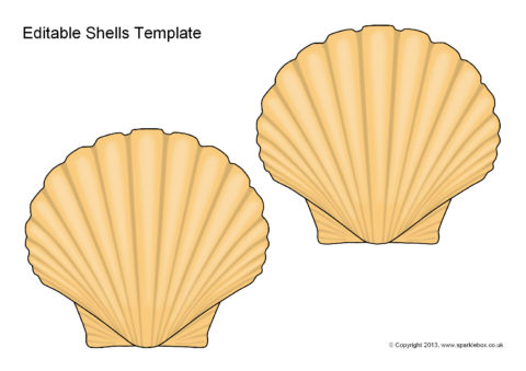 A Microsoft Word template that enables you to add text to coloured sea shells.