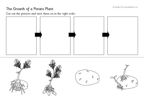 A simple worksheet where children cut out and sequence the basic stages of the growth of a potato plant.