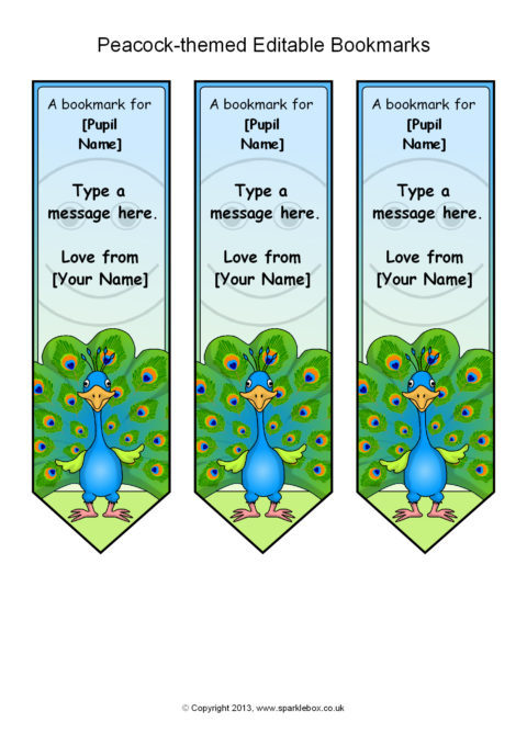 Peacock-Themed Editable Bookmarks (SB9834) - SparkleBox