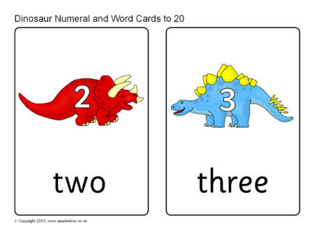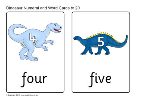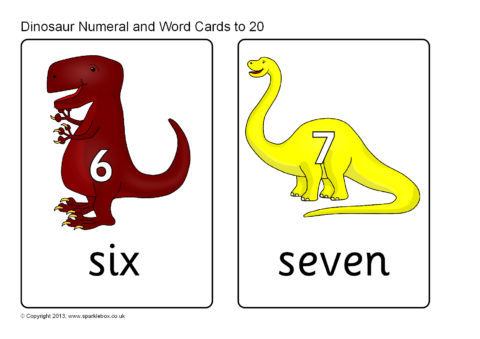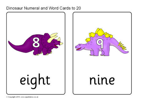 Dinosaur Numeral and Word Cards to 20 (SB9843) - SparkleBox