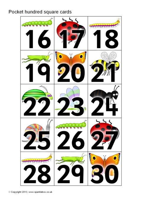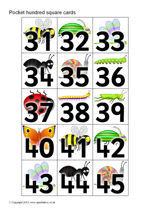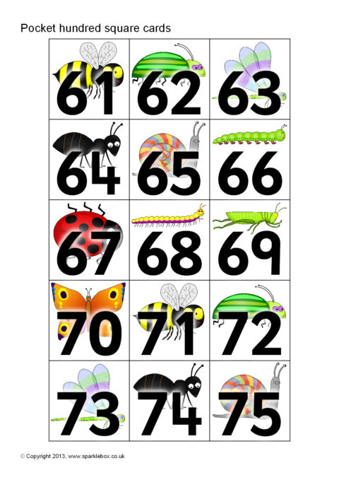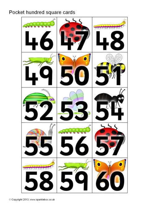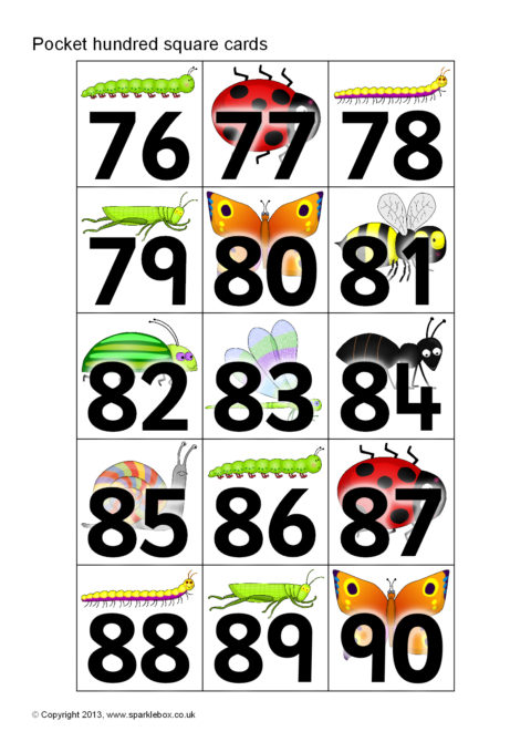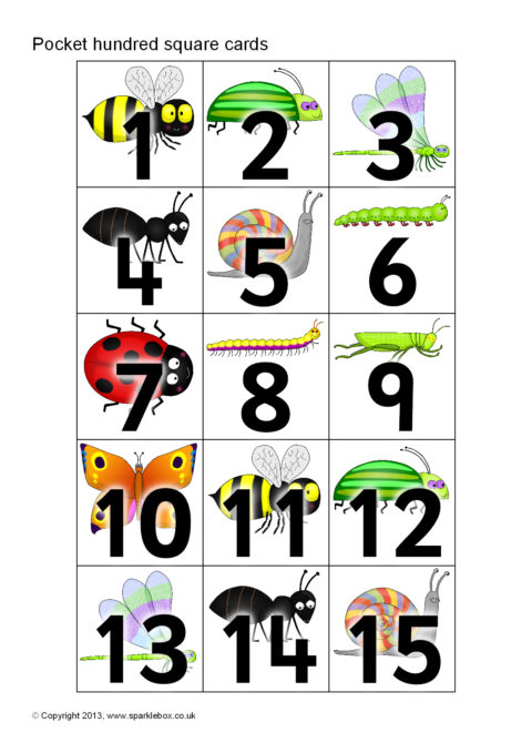 Minibeast-Themed Pocket Hundred Square Cards (SB9873) - SparkleBox