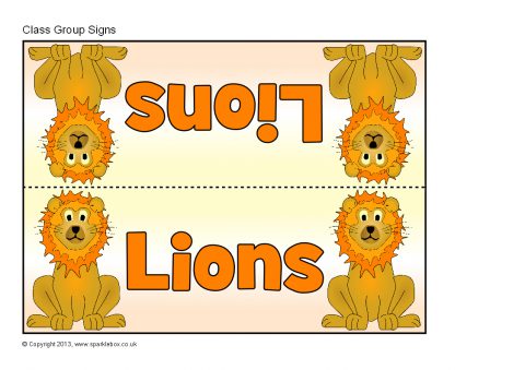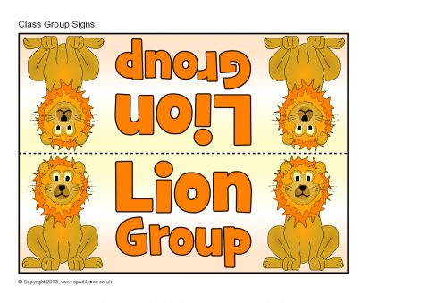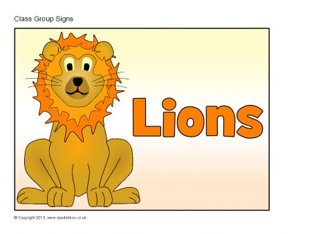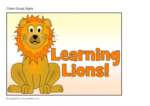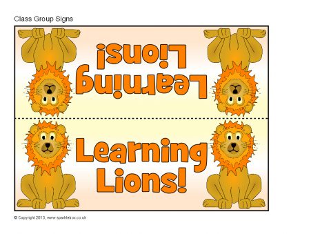 Printable signs for your class lions group. Includes fold-over table signs as well as posters for your display board.
