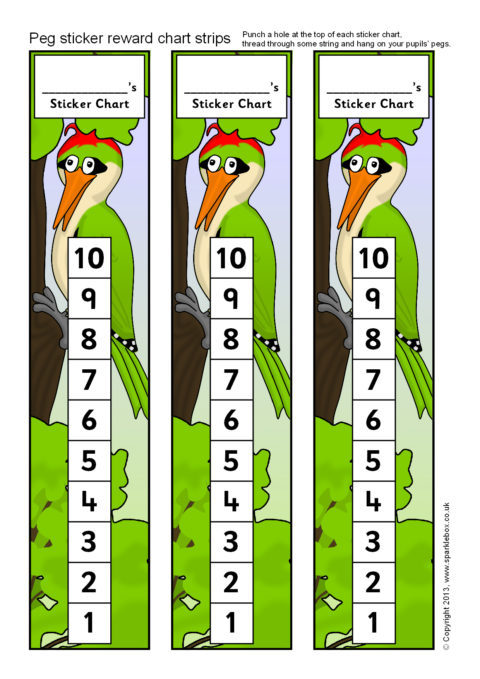 Woodpecker-Themed Peg Sticker Reward Chart Strips (SB9910) - SparkleBox