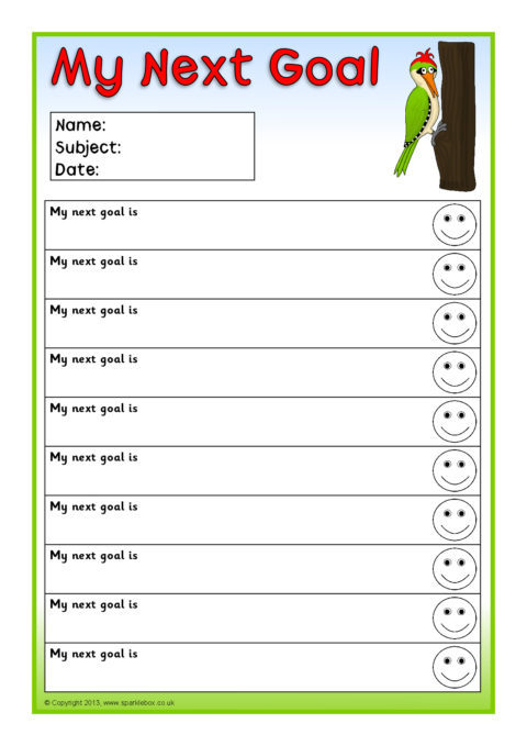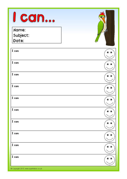 Editable target sheets (for Microsoft Word) with the text ‘I am learning to...’, ‘My next goal is...’ and ‘I can...’. Each sheet has space for 10 targets.