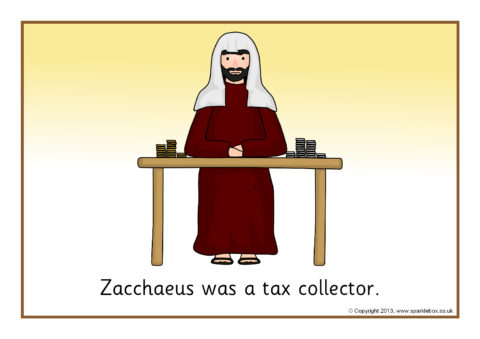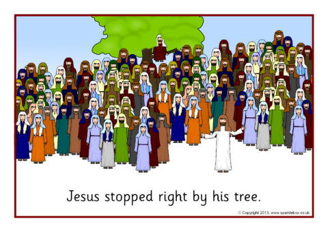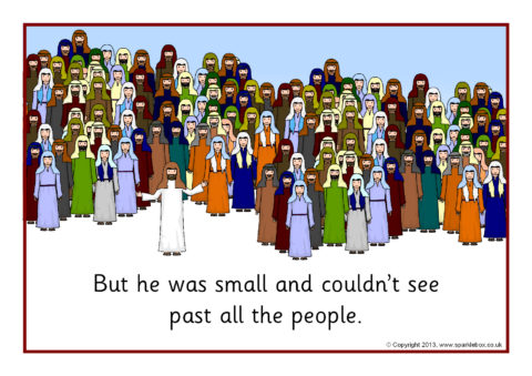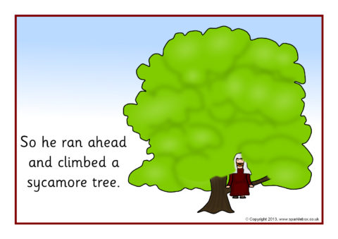 A set of printable visual aids to use when retelling the bible recount of Jesus and Zacchaeus.
