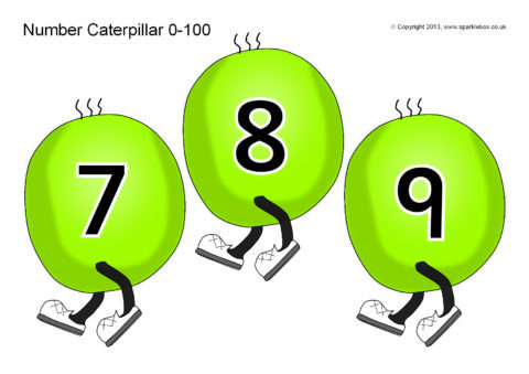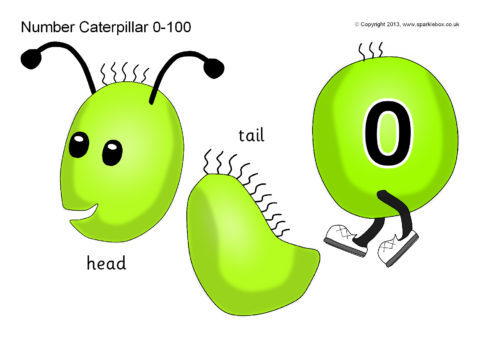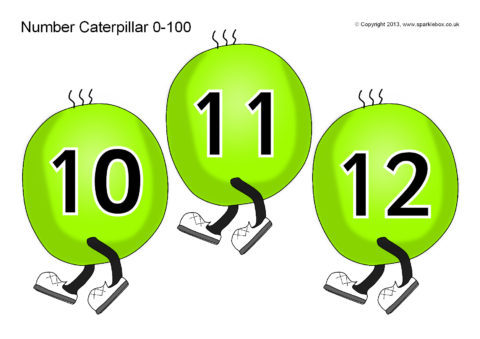 Create a caterpillar number line with the numbers 0 to 100 on brightly-coloured segments.