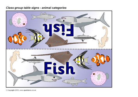 Class group signs featuring the six animal categories: Invertebrates, Mammals, Birds, Fish, Reptiles and Amphibians. Print out these foldable tabletop signs for use with your classroom groupings. Print on card, laminate and fold.