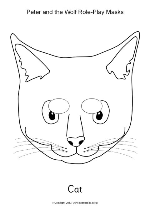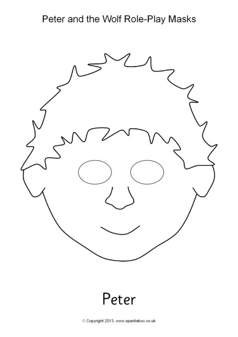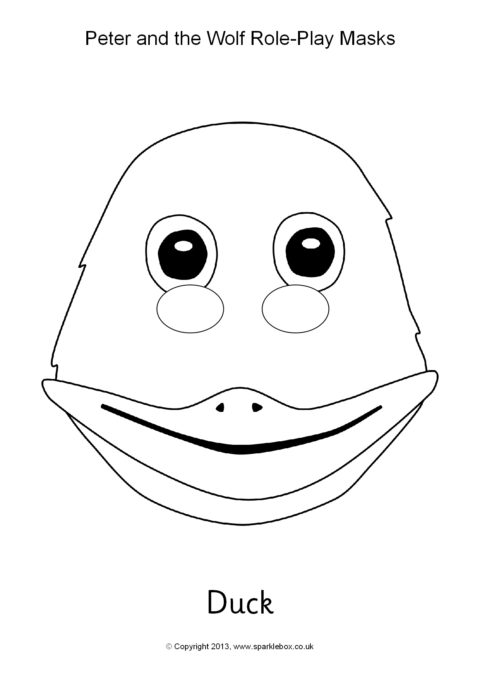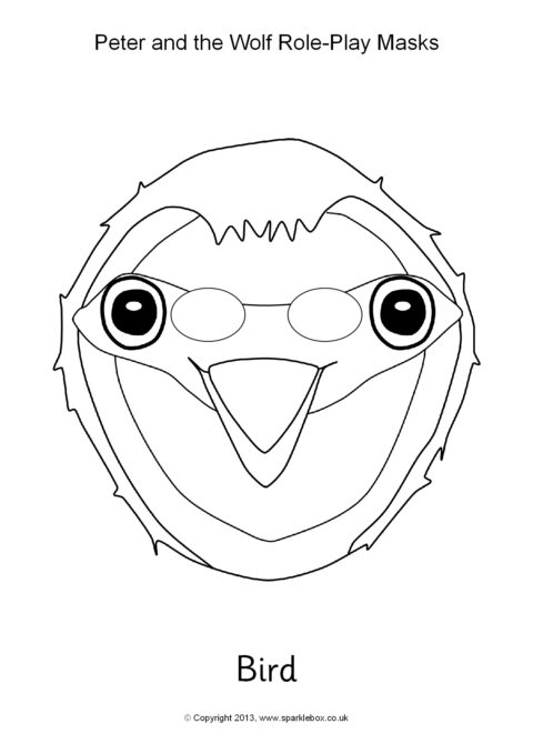 Simple printable masks featuring the animals and characters from the musical story of Peter and the Wolf.
