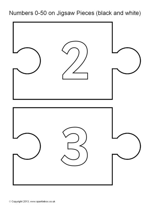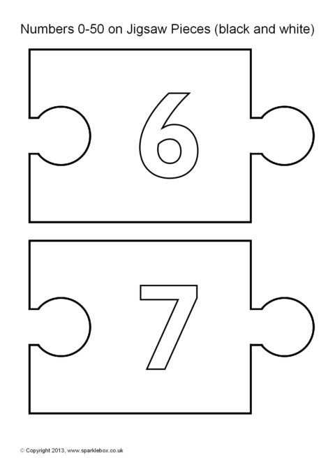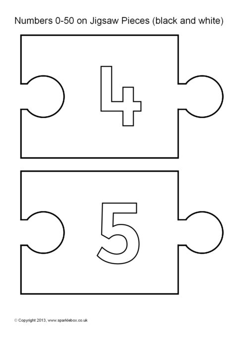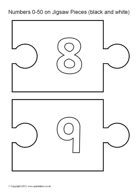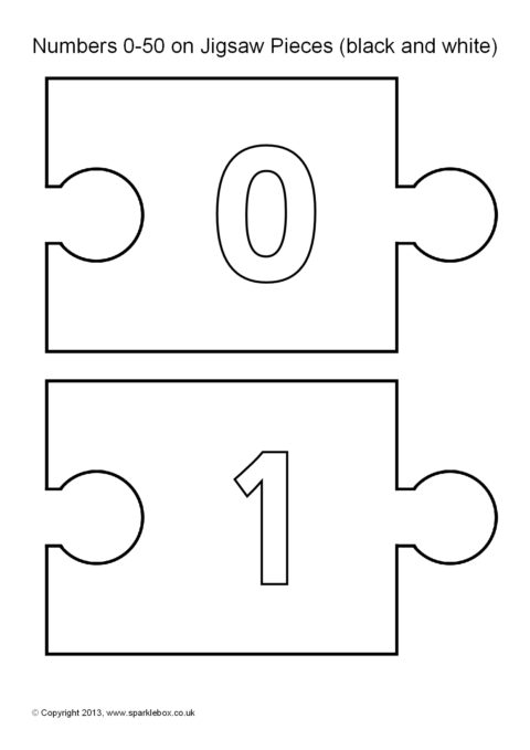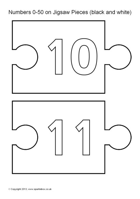 Numbers 0-50 on Jigsaw Pieces – Black and White (SB9972) - SparkleBox