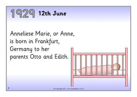 A useful set of printable posters showing the key events in the life of Anne Frank.