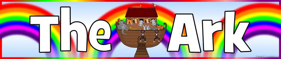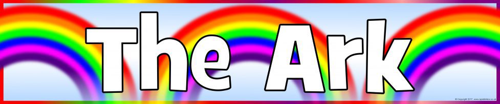 Banners that print over 3 landscape pages featuring the title, 'The Ark' and a rainbow theme.