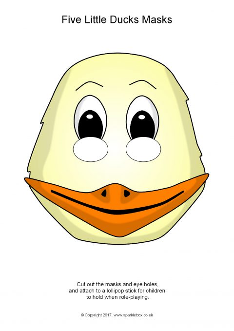 Simple printable masks featuring five fun duck characters. Ideal for use when singing the popular counting rhyme.