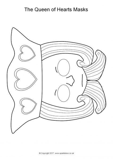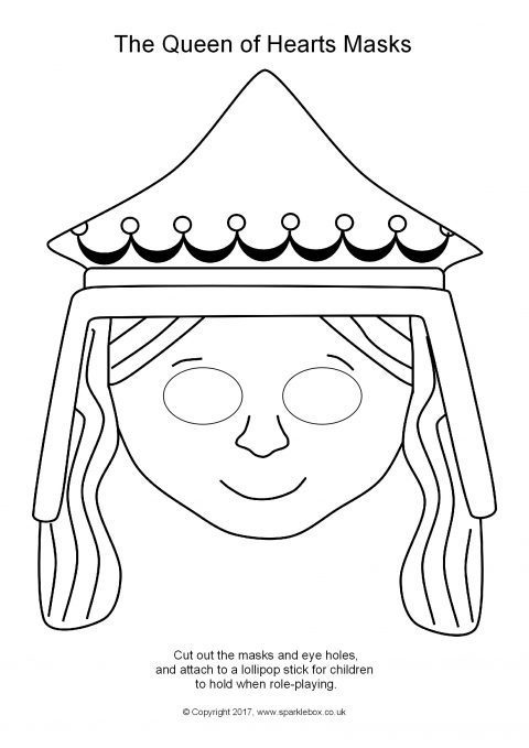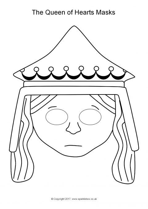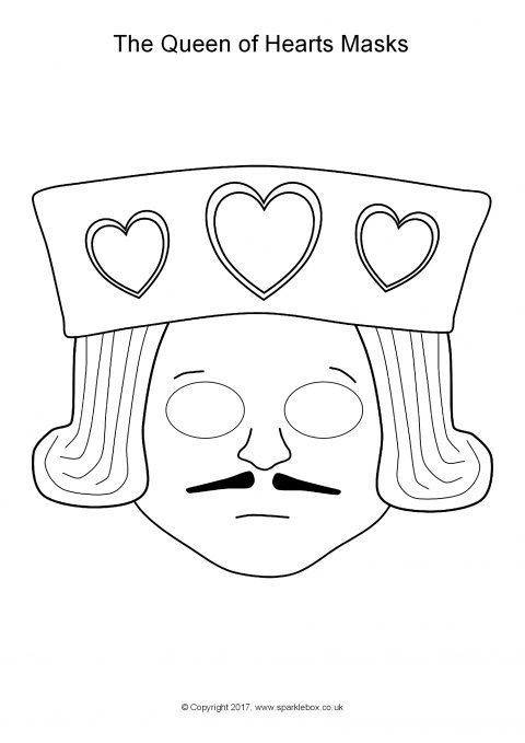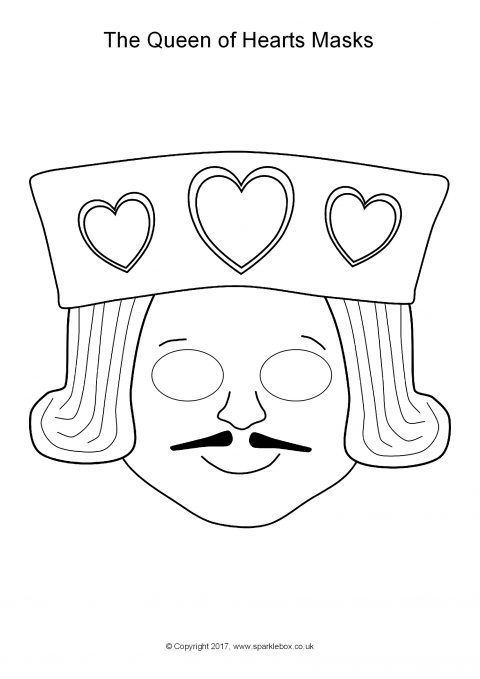 Simple printable masks featuring the characters from the popular nursery rhyme, The Queen of Hearts.