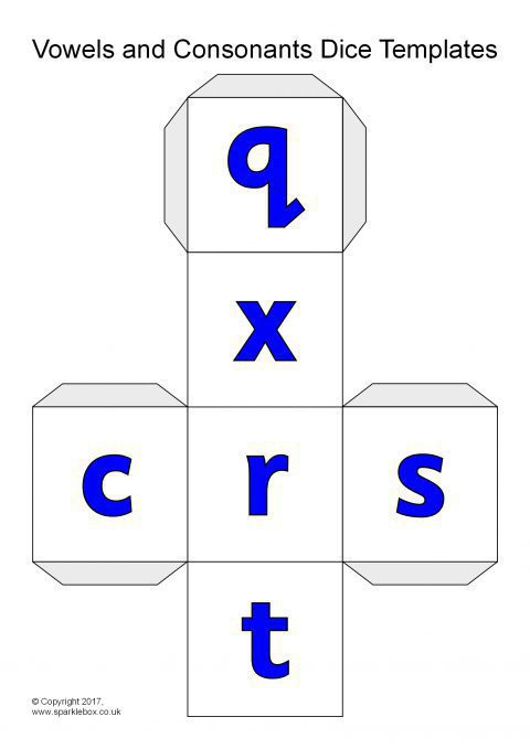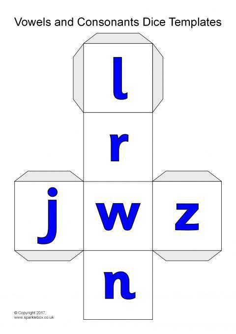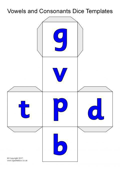 Vowels and Consonants Dice Net Templates (SB12080) - SparkleBox