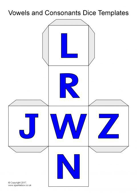 Vowels and Consonants Dice Net Templates – Capitals (SB12081) - SparkleBox