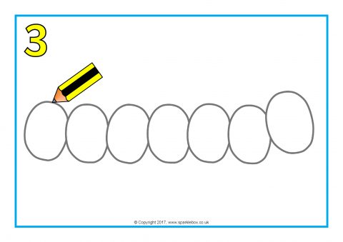 A set of posters showing step-by-step how to draw a simple caterpillar.