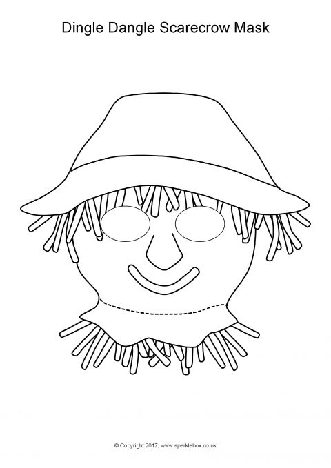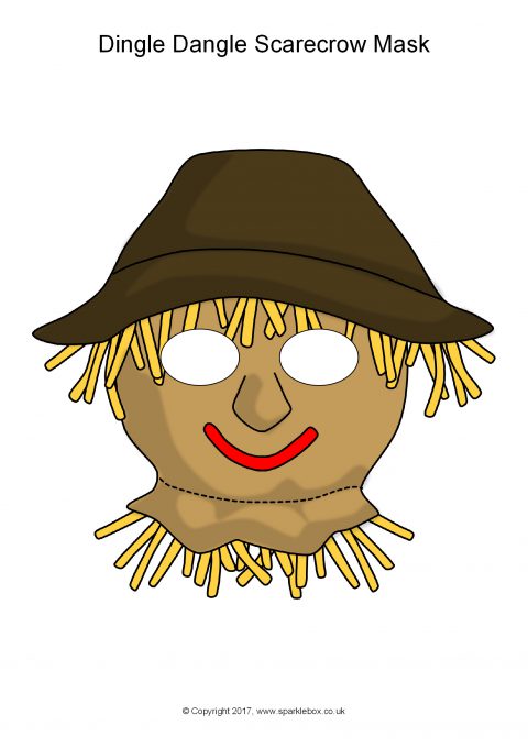 Simple printable scarecrow masks to use when singing the popular nursery song. Includes colour and black and white versions.