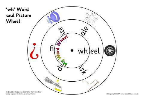 Print and assemble these 3-piece word and picture wheels with a paper fastener. Children rotate the wheels to make and match words and pictures beginning with the phoneme 'wh'.