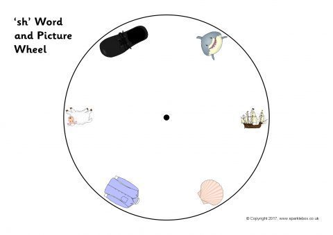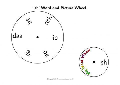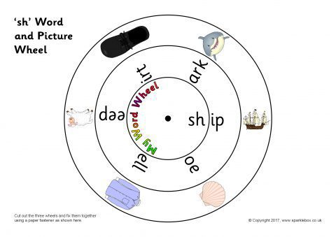 Print and assemble these 3-piece word and picture wheels with a paper fastener. Children rotate the wheels to make and match words and pictures beginning with the phoneme 'sh'.