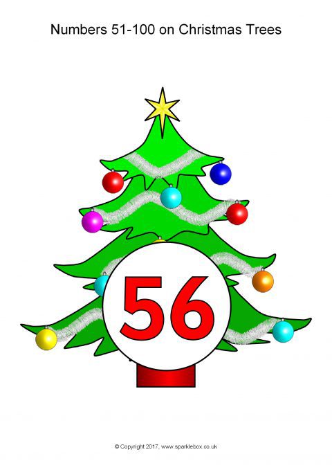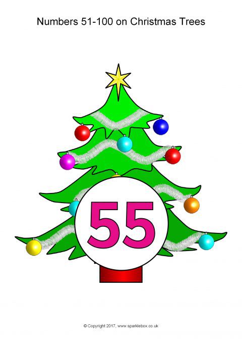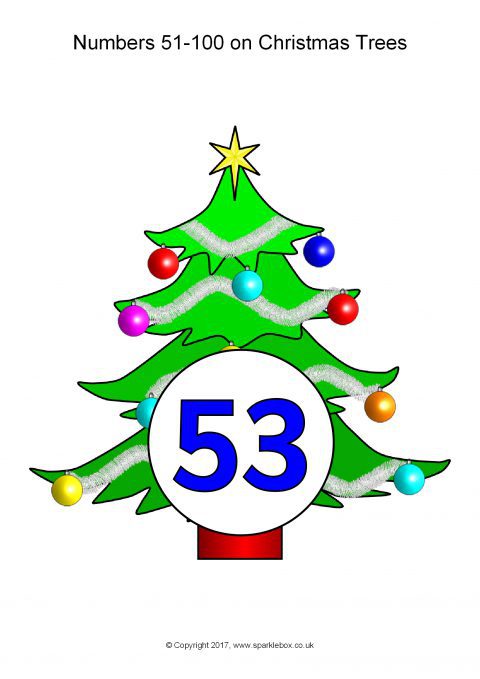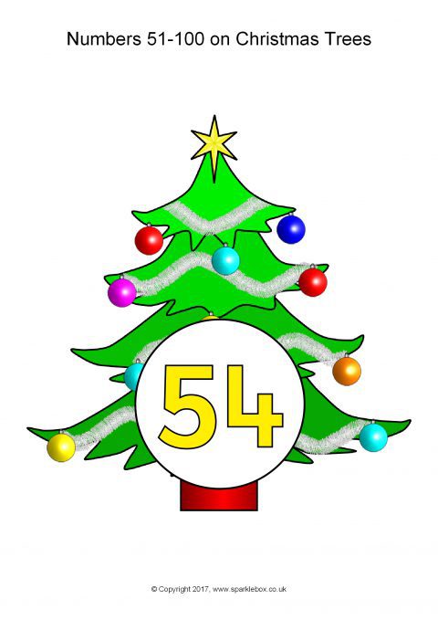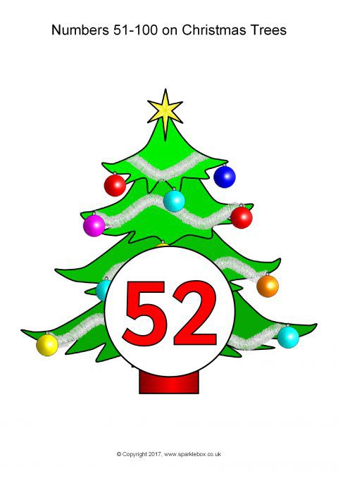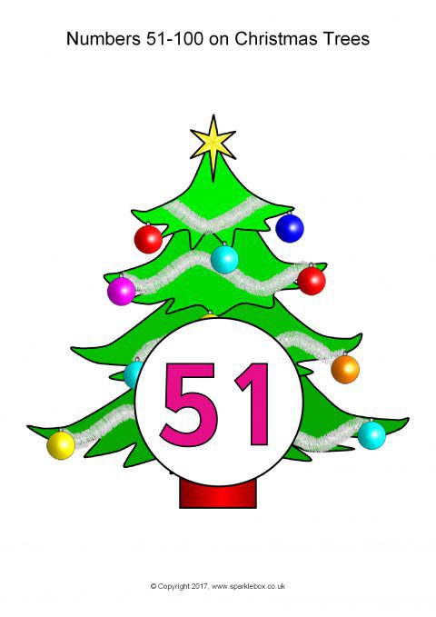 Numbers 51-100 on Christmas Trees (SB12127) - SparkleBox