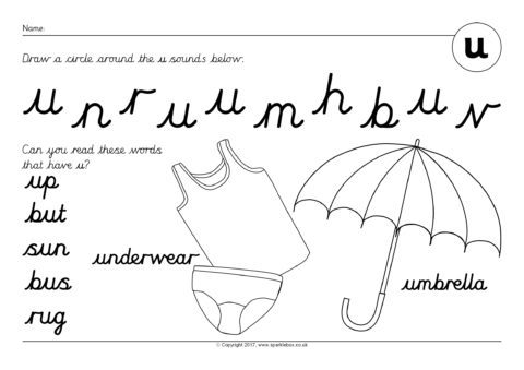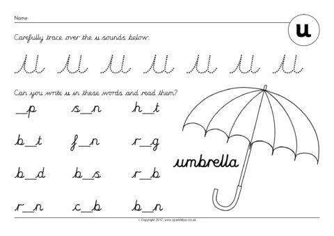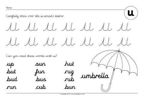 Phoneme Worksheets: u – Cursive (SB12177) - SparkleBox