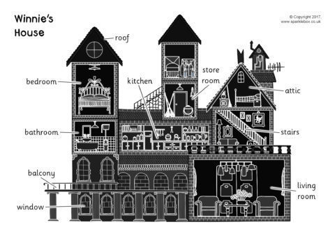 A set of posters showing labelled rooms in Winnie and Wilbur's house. Ideal for teaching about the common household rooms and furniture with ESL students.