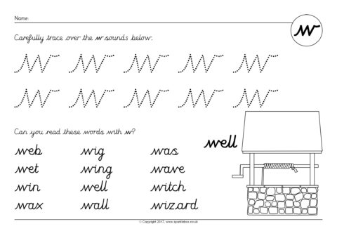 Phoneme Worksheets: w – Cursive (SB12241) - SparkleBox